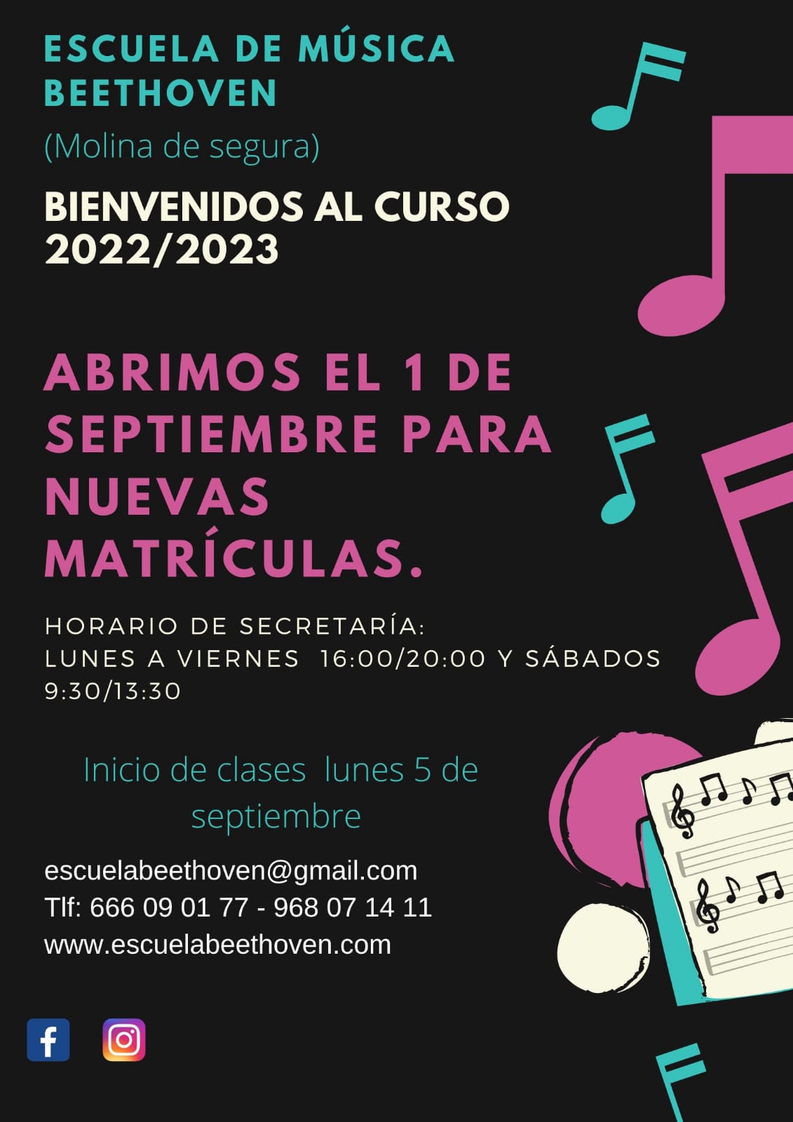 Estamos preparados para ti! A partir del lunes 7 de junio realiza tu matrícula para el curso 2021-2022, elige tu horario e instrumento! Te esperamos!